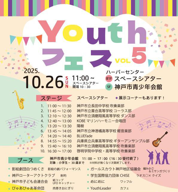 神戸市子ども会連合会のユースリーダー・ジュニアリーダーたちが、青少年会館主催のYouthフェスに出店します。